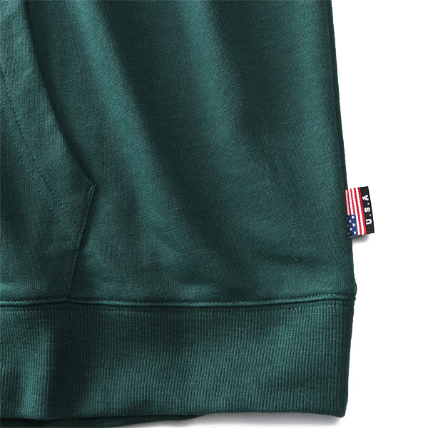 袖の切り替えが特徴の半袖切替ジップパーカー。夏でも快適に過ごせる裏毛を採用しました。