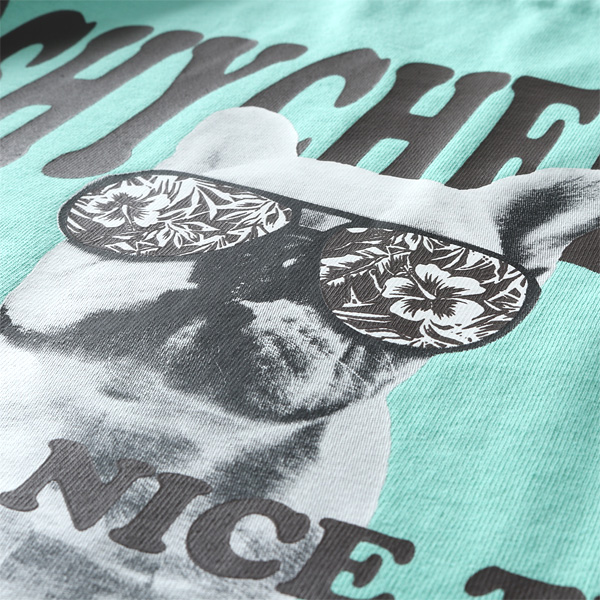 フレンチブルドッグのプリントが可愛いTシャツ。ヘビーウェイトボディの着心地の良さが魅力。一枚着でもインナー使いもできる万能の素材感です。犬好きにはたまらないストリートアイテムです。