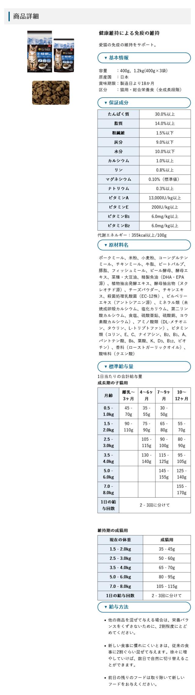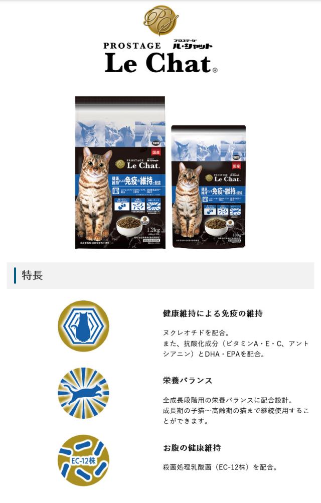 プロステージ キャット ル・シャット 健康維持による免疫の維持に配慮 1.2kg (400g×3) キャットフード PROSTAGE【正規品】