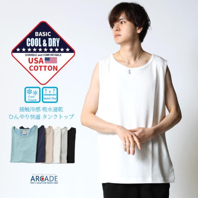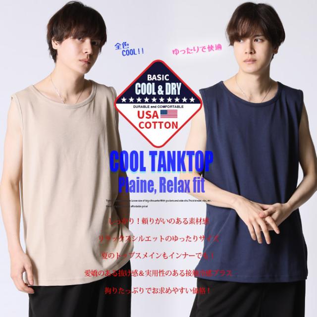 タンクトップ メンズ 速乾 ドライコットン ひんやり涼しい 夏 新作 USAコットン タンクトップ ノースリーブ リラックスフィット インナー 無地 タンクトップ