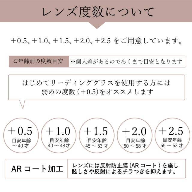 度数は+0.5、+1.0、+1.5、+2.0、+2.5の5度数展開。