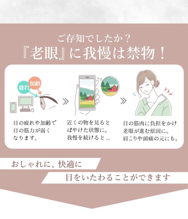 - おしゃれだね〜と褒められます。老眼鏡には見えないです。普段使っている眼鏡より、少し重たいかな〜ぐらいです。