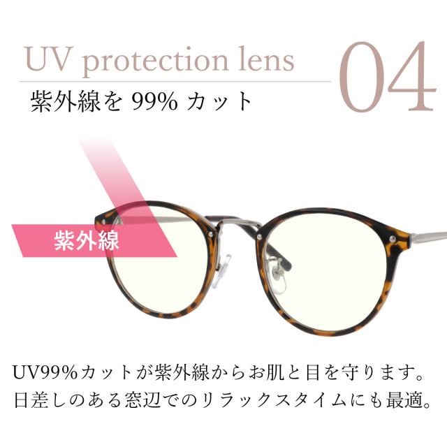レンズは紫外線を99%カットし、ブルーライトは30%カットします。