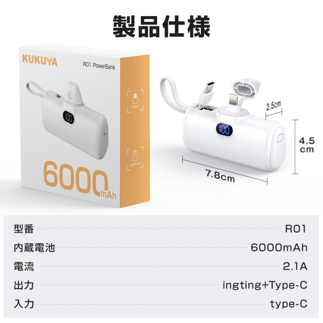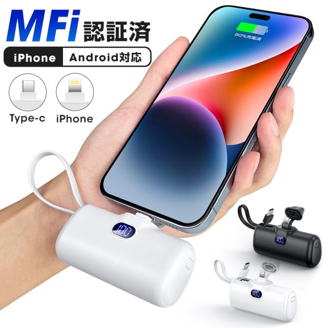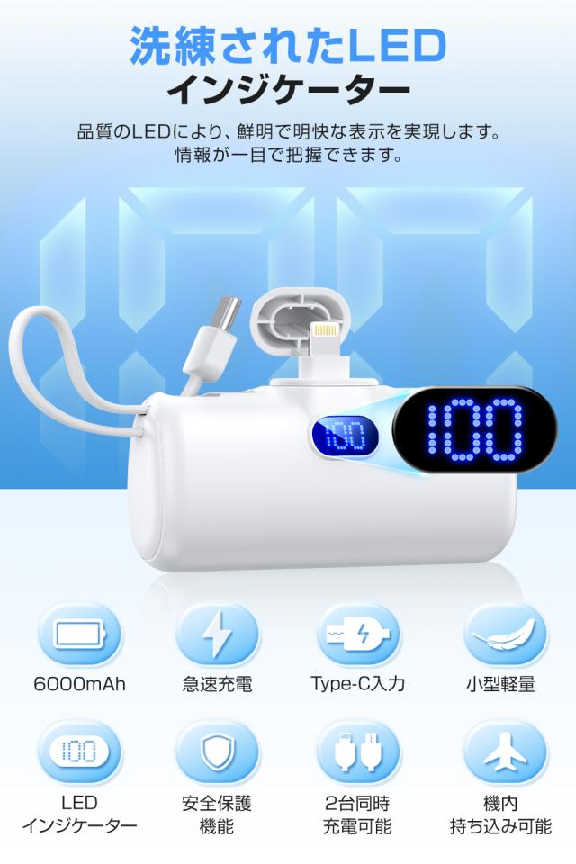 小型モバイルバッテリー 大容量 6000mAh 軽量 MFi認証品 2台同時充電 ミニ 便利 オシャモバ 充電器 超小型 超軽量 コネクター内蔵 持ち運び