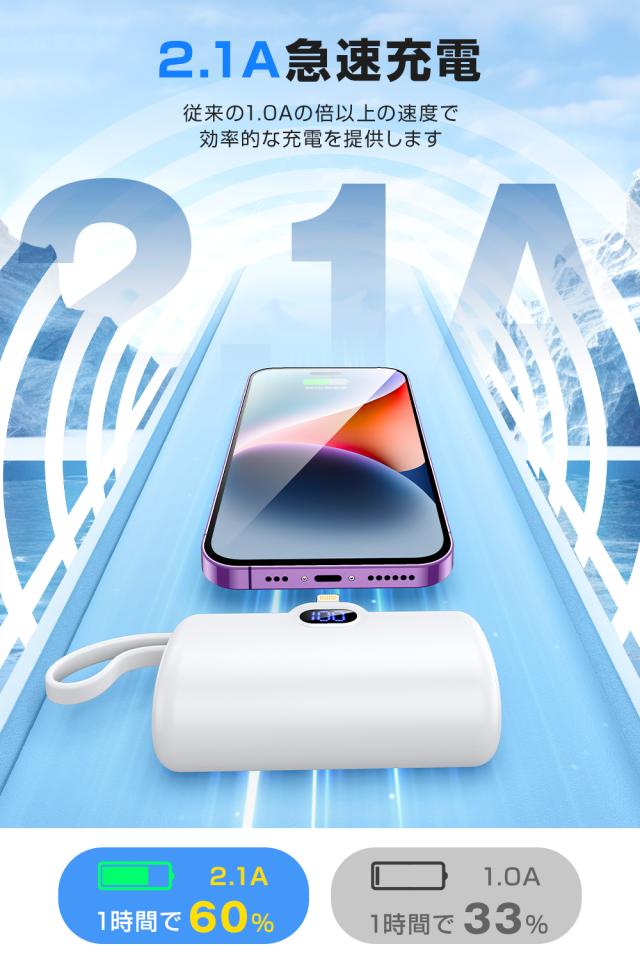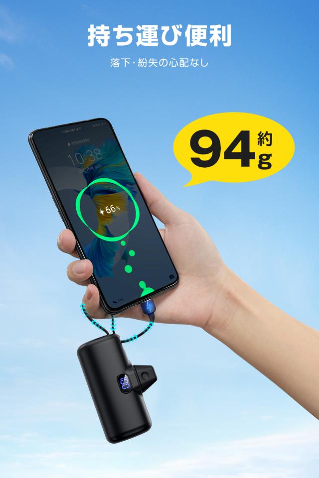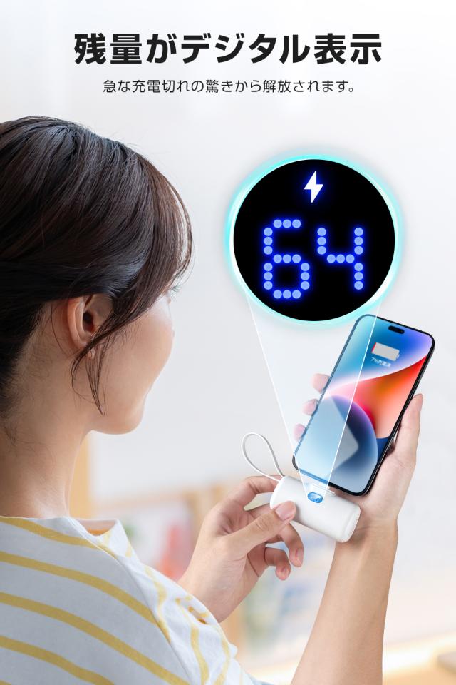 弊社のモバイルバッテリーはコネクターを内蔵し、差し込むだけですぐに直接充電可能で、iPhone(iPad)を繋ぐケーブルを持ち歩く必要はありません。アジア人の手骨の構造にぴったりして大きさは片手で握れるほどのコンパクトで、片手でスマホを持つ際も抜けにくく、充電しながら音楽・ドラマ鑑賞できて、スマホを自由自在に利用を実現します。