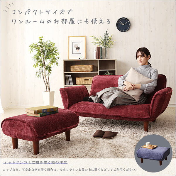 ●コーデュロイ生地で肌触りが気持ちい2人掛けコンパクトソファとオットマンのセット!