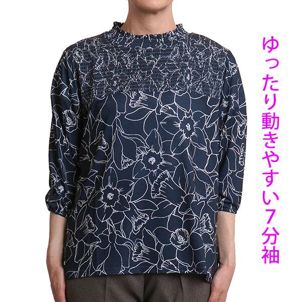 シニアファッション レディース tシャツ 花柄 7分袖 七分袖 服 婦人服 70代 60代 90代 高齢者 春夏 ミセス おしゃれ