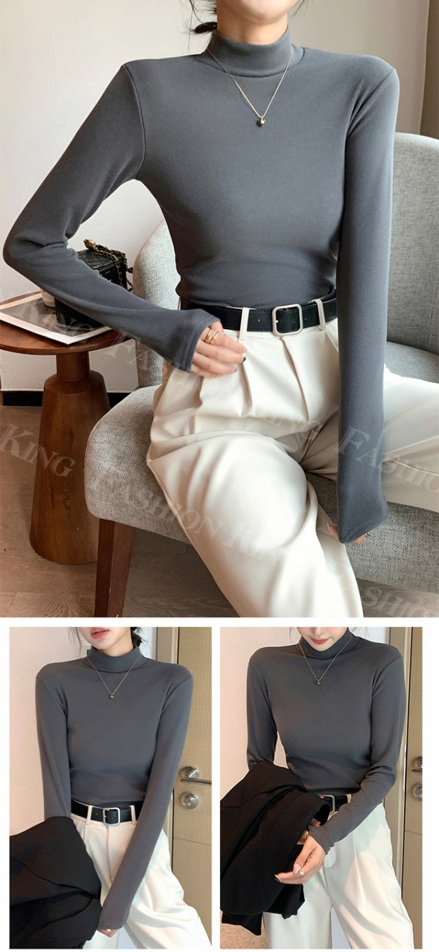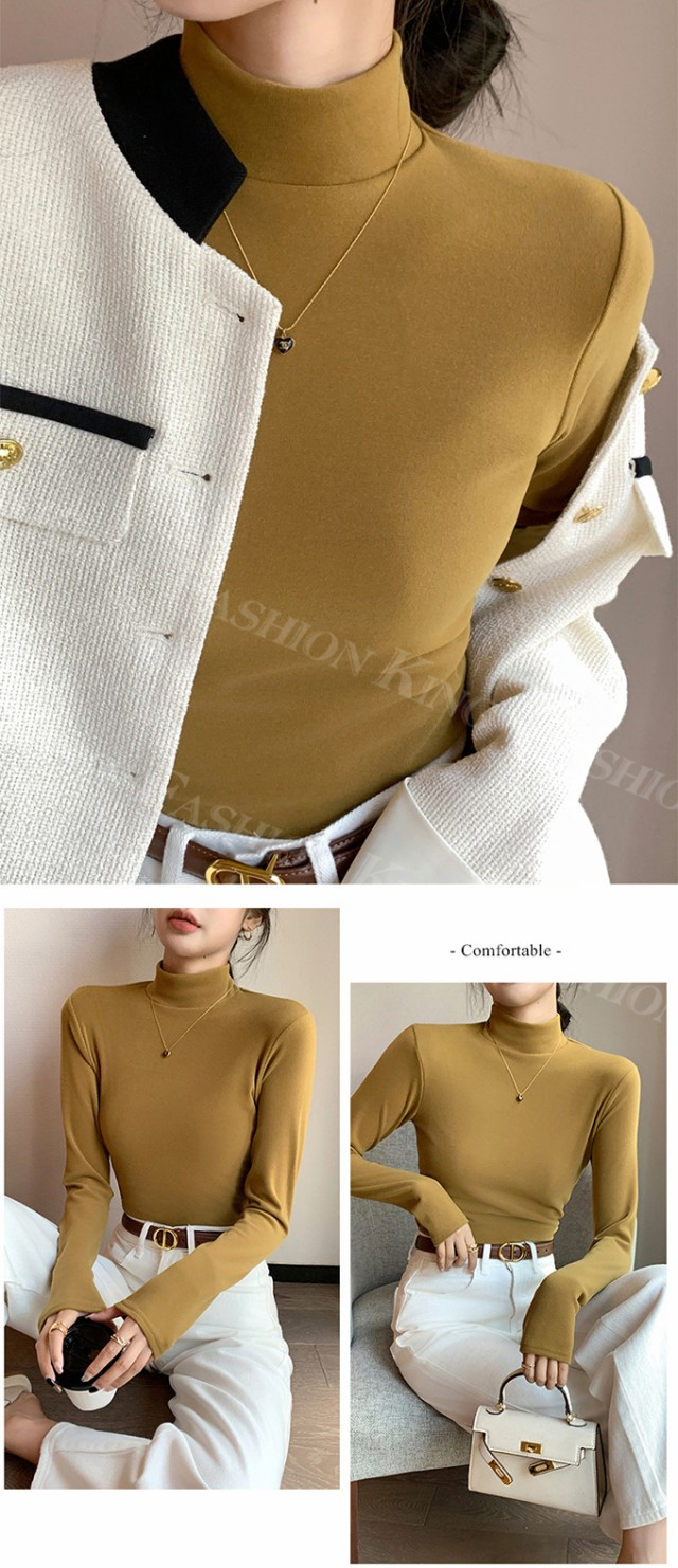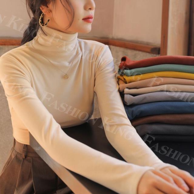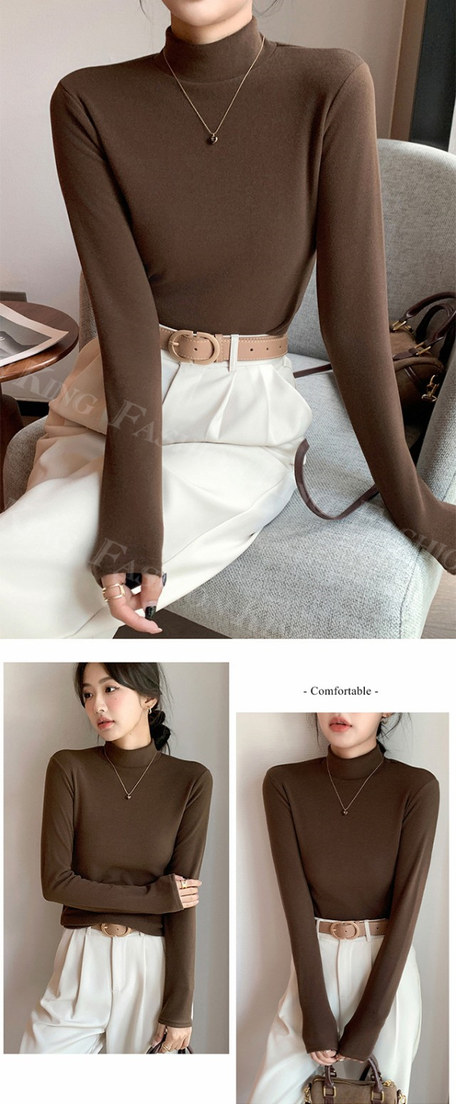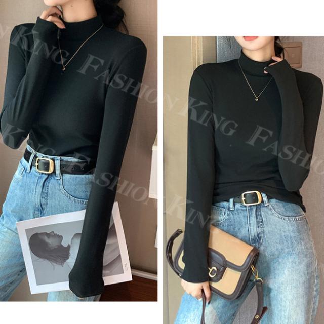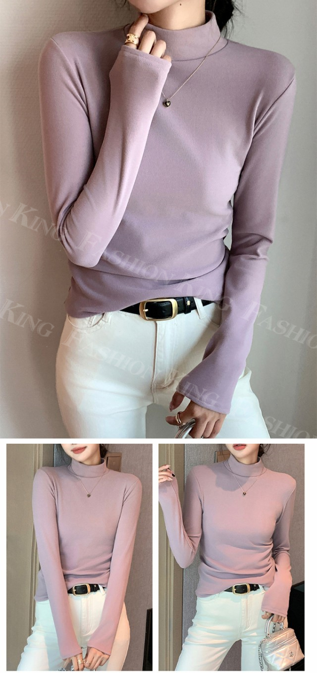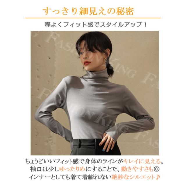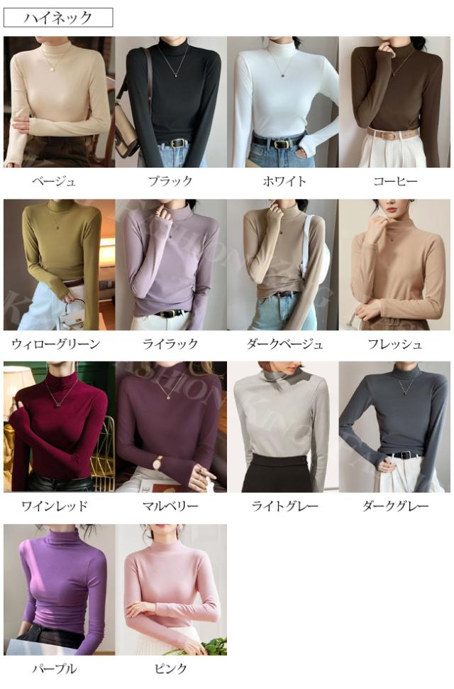 <2点まとめ買いで送料無料>ハイネックTシャツ タートルネック 長袖 レディース 秋冬 春新作 トップス カットソー インナー クルーネック 無地 ロンT ロング スーツ 長袖カットソー シンプル ナチュラル 肌着 モーダル 伸縮素材 着心地 入学式 入園式
