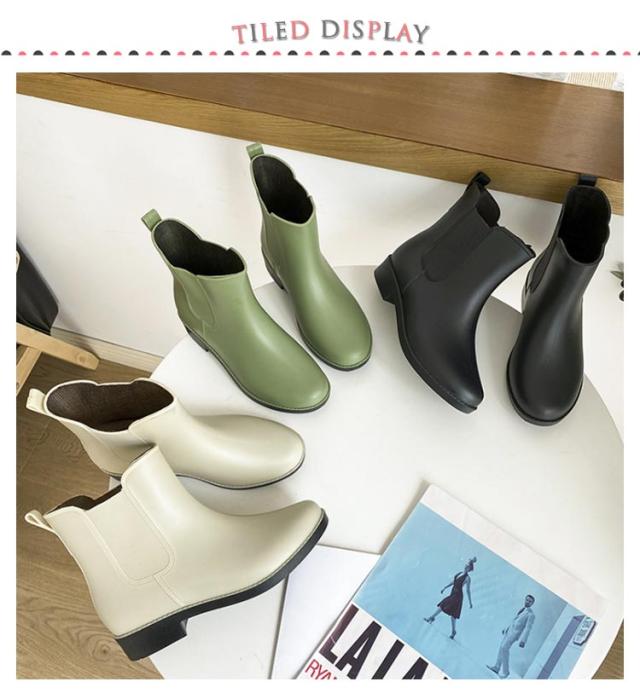 | 雨の日のオシャレの定番!毎日使える万能なレインブーツです。 水をしっかり弾くラバー風素材を使用し雨の日も安心して外出可能。 サイドゴア設計を採用し、ゴムがよく伸び着脱が簡単で歩きやすい。 接地面は滑りにくい凹凸設計で雨の日も安心。 安定感のあるローヒールで疲れにくく雨の日も快適。 | |