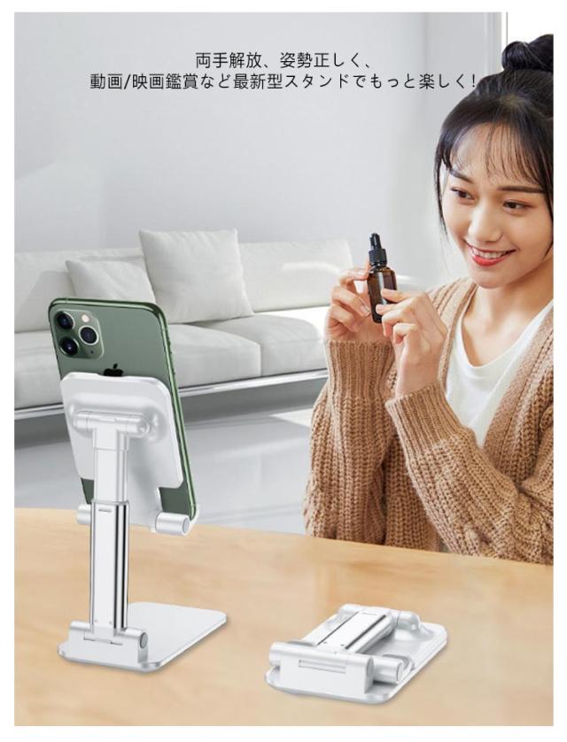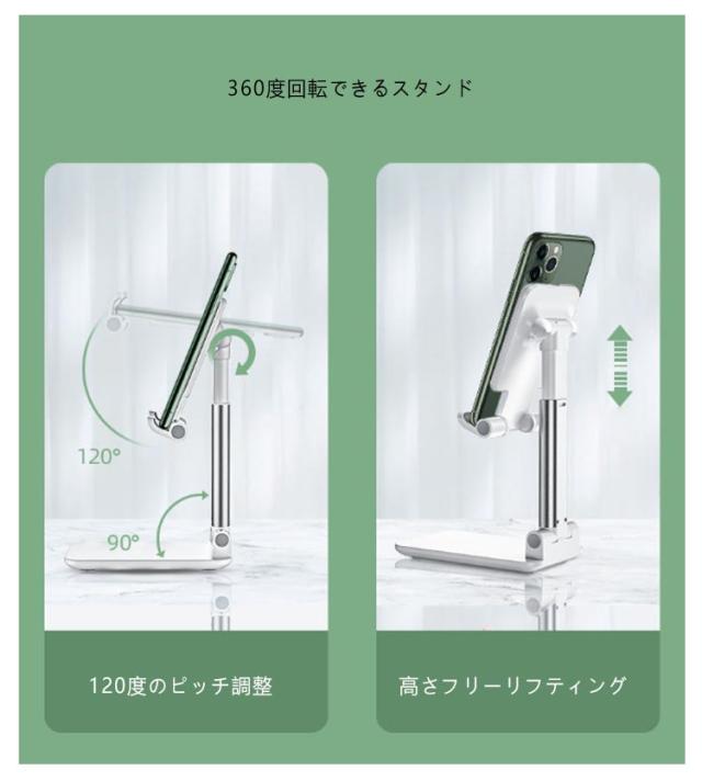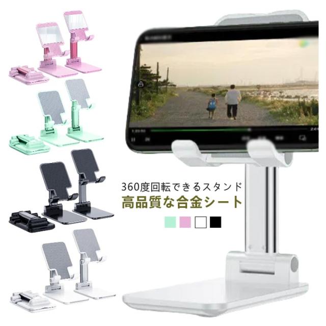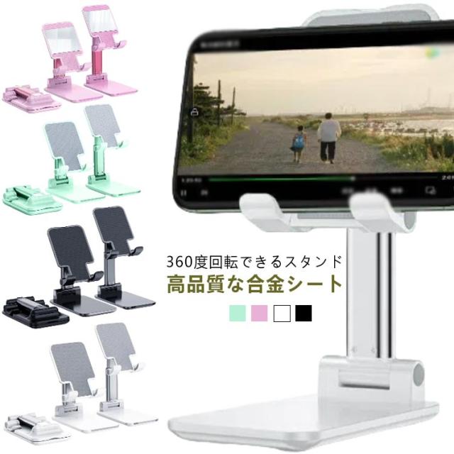 置き台 スマホホルダー スマホスタンド 折りたたみ おしゃれ タブレットスタンド 卓上 スマートフォンスタンド ipad 横置き Android スマホ立て 高さ調整 角度調整 iphone 縦置き 360度回転 携帯スタンド コンパクト キッチン