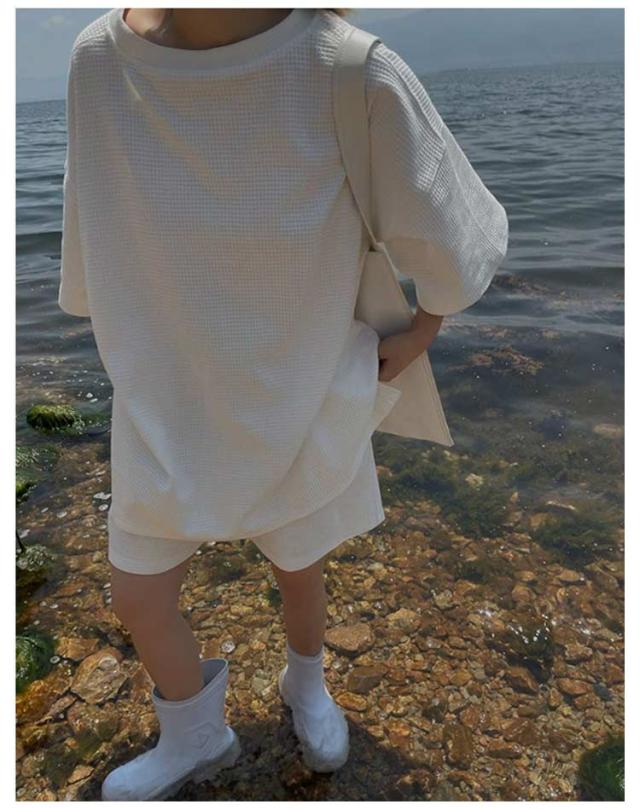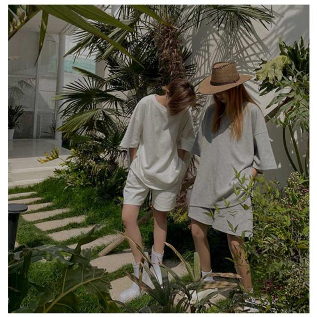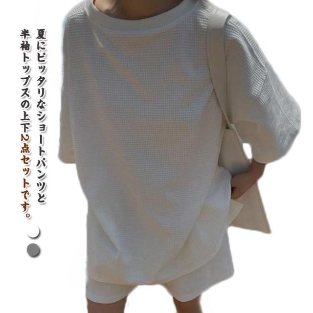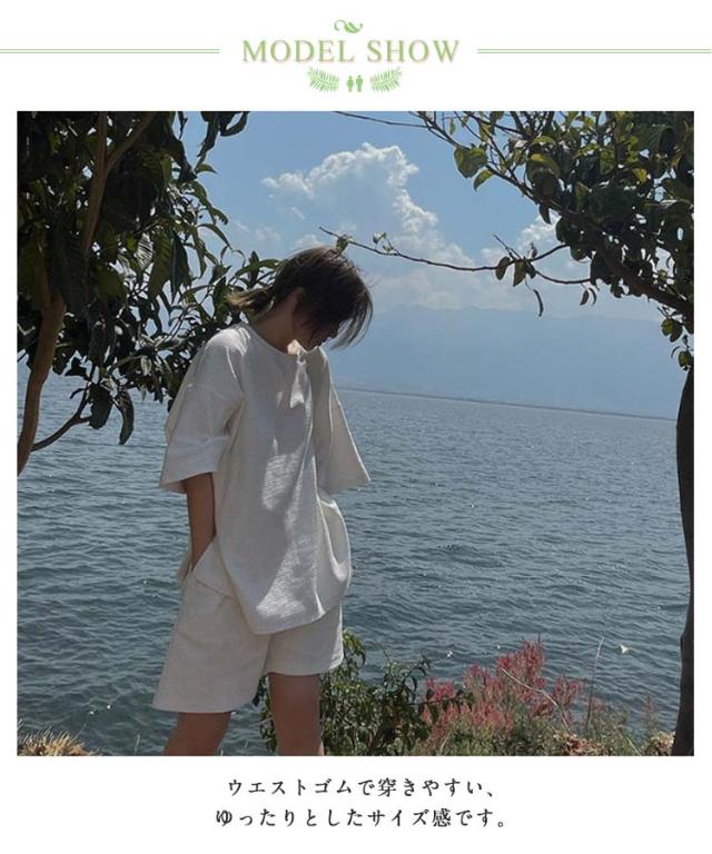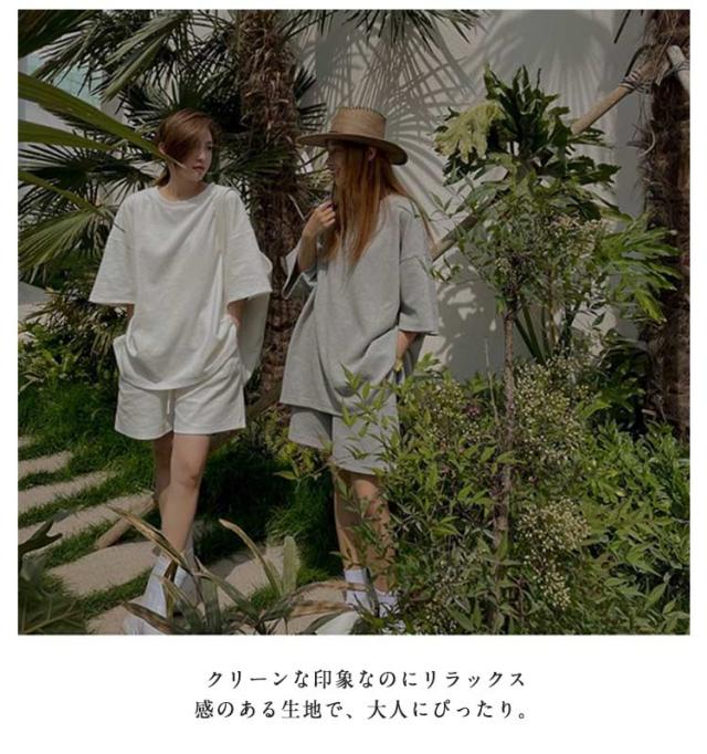 ルームウェア セットアップ 短パン リッラクス ビッグTシャツ ジャージ 夏 普段着 リラックスウェア 部屋着 薄手 着?せ ショートパンツ 上下 レディース おしゃれ カジュアル 半袖 セットアップ ウエストゴム 無地 シンプル お出かけ ホワイト ブラック