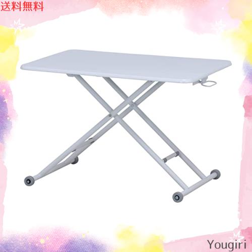 不二貿易 昇降式テーブル センターテーブル 幅90~109.5×奥行60×高さ11.5~70cm ホワイト ガス圧 無段階調整 キャスター付き 完成品 7470