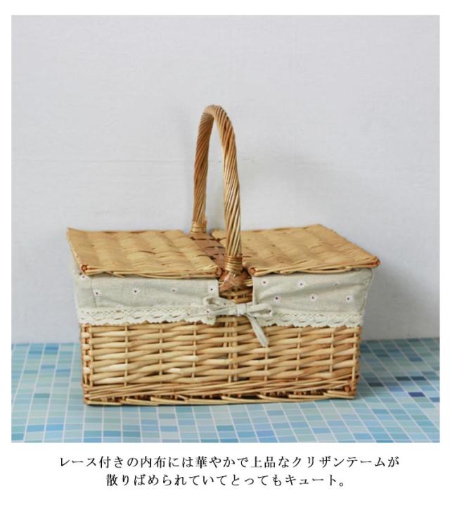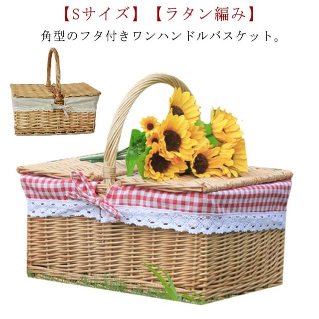 籐かご ピクニックバスケット フタ付き ミニ ピクニック キャンプ 蓋付き ラタン ワンハンドル 持ち手 編み レース 内布付き バスケット ラタンバスケット 収納ボックス ピクニックバスケット ピクニックかご ナチュラル かごバスケット 籐 籠 かご バスケット