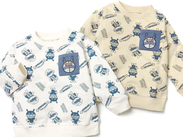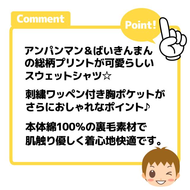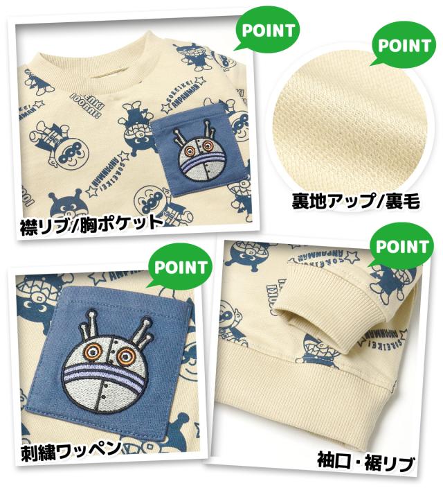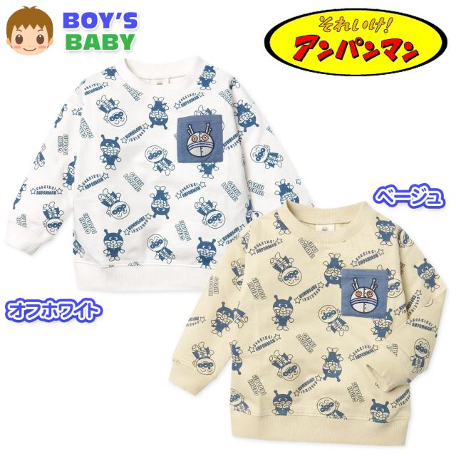 【送料無料】男児 ベビー 裏毛 長袖 スウェットシャツ アンパンマン 本体綿100% 胸ポケット 刺繍ワッペン iw-1025【メール便対応】
