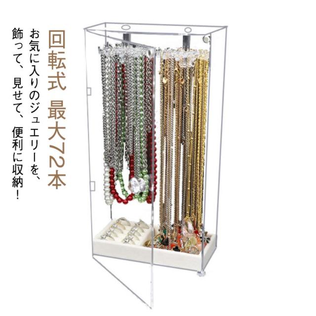 ネックレスケース アクリルケース 回転式 絡まない ネックレススタンド 透明 イヤリング ネックレスケース ジュエリー ピアス ネックレス収納 最大72本 アクセサリーケース ディスプレイ コレクションケース