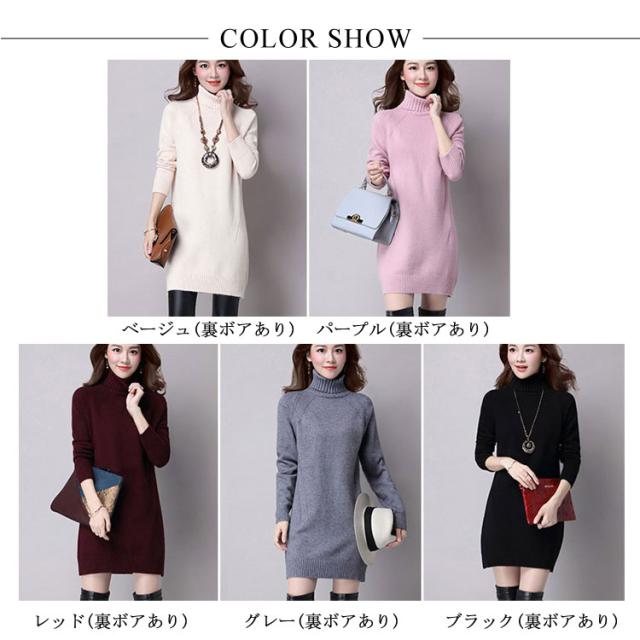 ニット ワンピース タートルネック 膝上丈 ニットワンピ 大きサイズ 保温