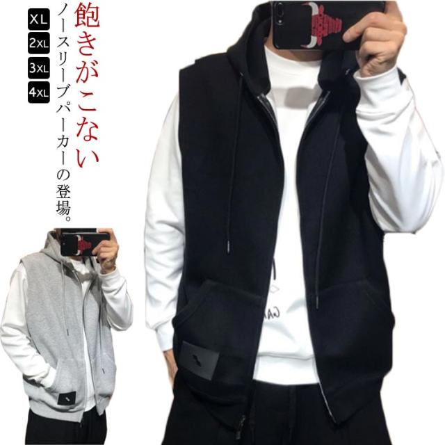 カジュアル BF風 パーカー フード付き メンズ 無地 ノースリーブ アウター ゆったり ベスト 春 トップス スポーツ 通学 夏 新作 シンプル スウェット トップス アウター かっこいい カジュアル スポーツ 春秋 きれいめ おしゃれ