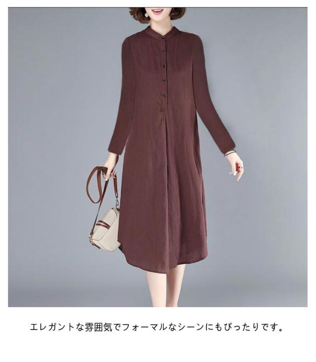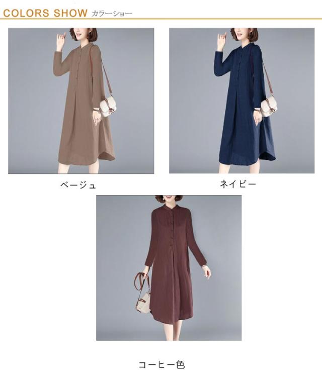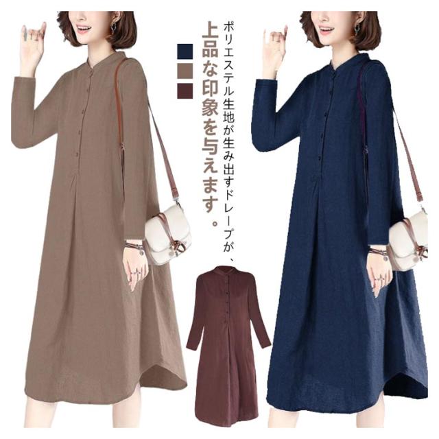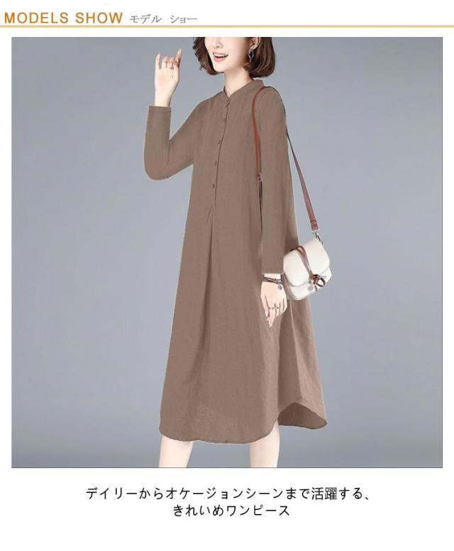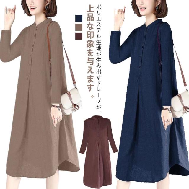 ワンピース 春服 シャツワンピース ロングワンピース シャツワンピース ワンピ ロングワンピース 長袖ワンピース 綿麻 レディース 長袖 秋服 大きいサイズ 体型カバー 無地 体型カバー Aライン カジュアル 大人