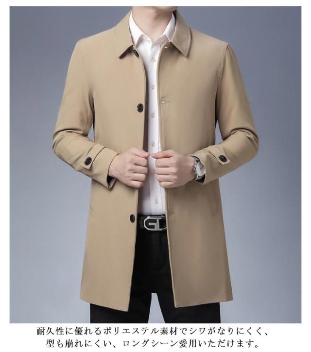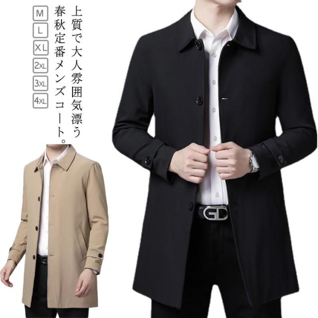 コート メンズ アウター ステンカラーコート 折り襟 ビジネスコート ミドル丈 コート ロングコート 春 40代 50代 通勤 シンプル 無地 大きサイズ 春服