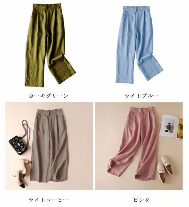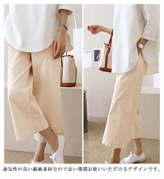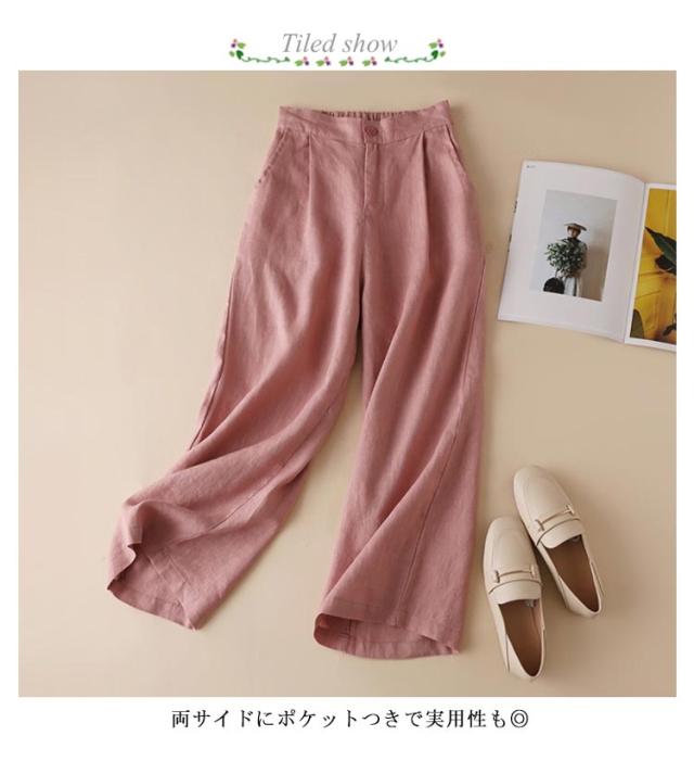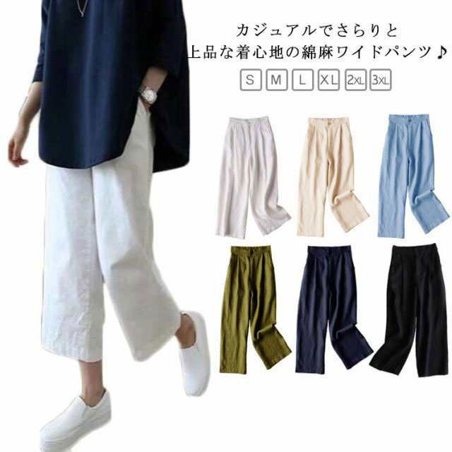 M-3XL 全8色 パンツ 綿麻 ワイドパンツ セミワイド 9分丈 九分丈 レディース ボトムス コットン リネンパンツ イージーパンツ イージーワイドパンツ ウェストゴム ゆったり 大きいサイズ カジュアル ルームウェア 春 夏