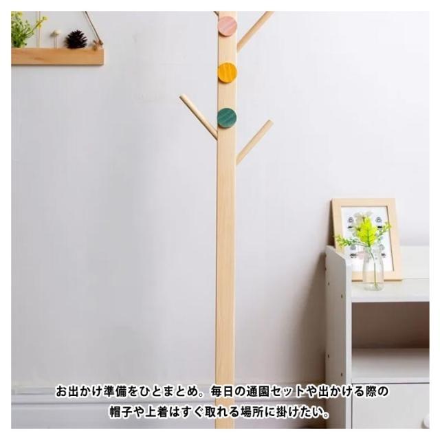 | 天然木のポールハンガー 子供が使いやすい高さ100cmのポールハンガー♪ お子さまが進んで掛けたくなる「木」のデザインにしました。 カラフルなライトと松の木のモデルがお部屋のアクセントに。 天然木パイン材を使用しており、安心・安全にお使いいただけます。 お出かけ準備をひとまとめ。毎日の通園セットや出かける際の帽子や上着はすぐ取れる場所に掛けたい。 | |