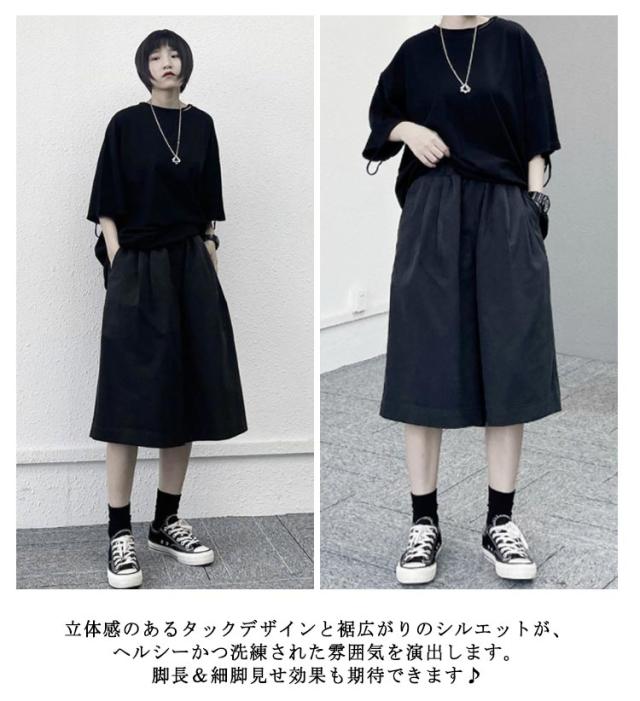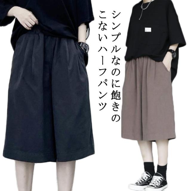 キュロット ワイドパンツ ママコーデ ハーフパンツ ハーフパンツ レディース 夏服 ミディアム丈 プルオンパンツ ひざ丈 フレアーパンツ カットソー スカーチョ ゆったり 体型カバー ウエストゴム 部屋着 ポケット付き 着?せ 無地 シンプル カジュアル