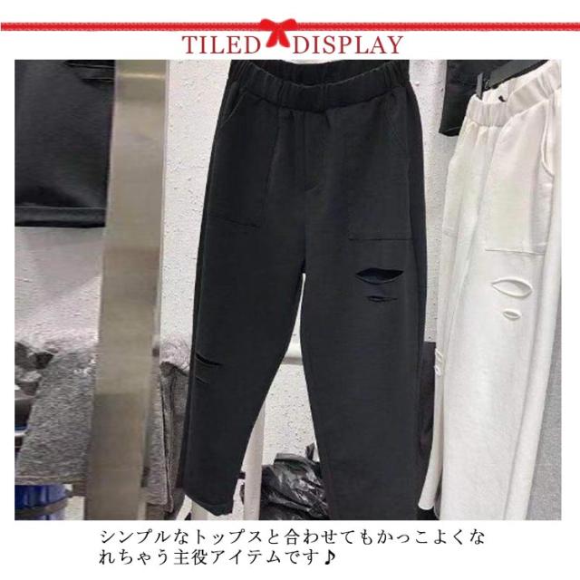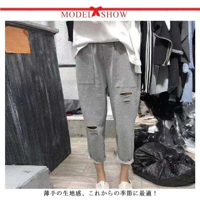 美脚 スウェットパンツ ダメージ加工 レディース スリム 9分丈 スウェット ジョガーパンツ ダンス衣装 ヒップホップ フィット 部屋着 スウェットパンツ 脚長効果 おしゃれ カジュアル ストレート ジュニア 韓国風 部屋着 大きいサイズ