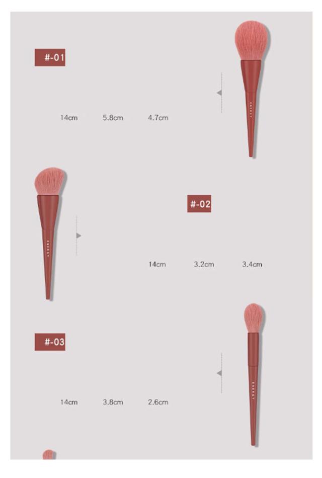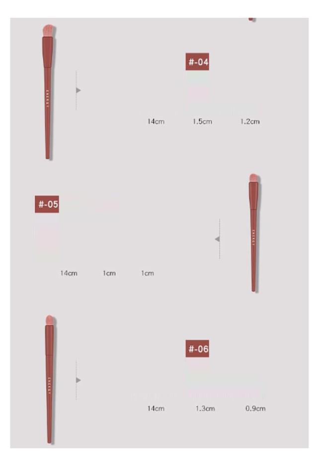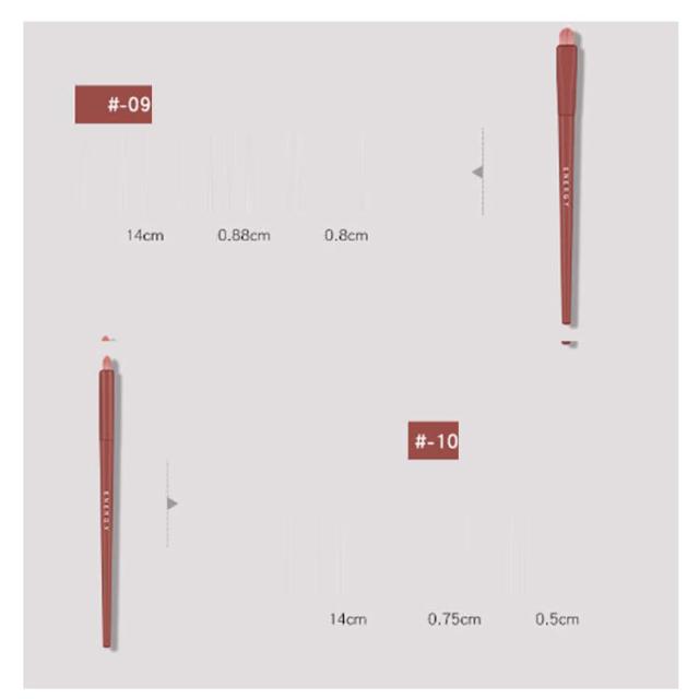 | サイズについての説明 | 10本セット: 01/パウダーブラシ/14cm 02/シェーディングブラシ/14cm 03/ハイライトブラシ/14cm 04/ノーズシャドウブラシ/14cm 05/アイシャドウブラシ(大)/14cm 06/ぼかしブラシ/14cm 07/アイシャドウブラシ(小)/14cm 08/アイブロウブラシ/14cm 09/コンシーラーブラシ/14cm 10/ぼかしブラシ(小)/14cm ※サイズ表の実寸法は商品によって1-2cm程度の誤差がある場合がございます。 |