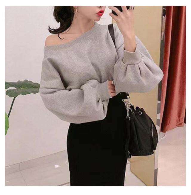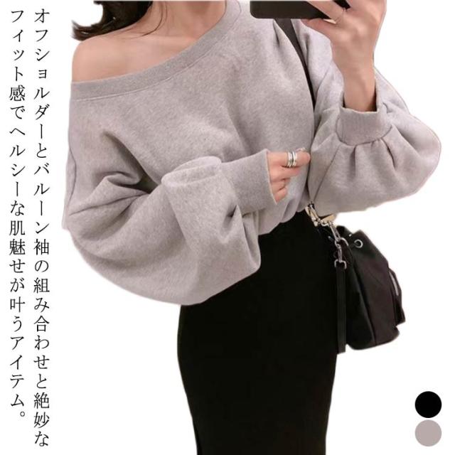 春服 オフショルダー オフショルダートレーナー バルーンスリーブ レディース トレーナー トレーナー 春 2WAY 長袖 春物 スウェット オフショル ゆる トップス アシンメトリー オフショル プルオーバー 送料無料 春 可愛い グレー ブラック ゆったり