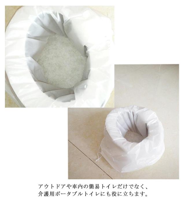 | 80回分 非常用簡易トイレ用凝固剤 凝固剤は個別包装となっており、衛生的で保管・持ち運びしやすいポータブルトイレ用凝固剤。 凝固剤1袋で約500mlの水分を固めることが可能です。水分を素早く固めるので使用後の水分モレの心配がありません。 水がなくても、ふりかけるだけでゼリー状に固めるから、被災など時に重宝する間違いありません。 アウトドアや車内の簡易トイレだけでなく、介護用ポータブルトイレにも役に立ちます。 | |