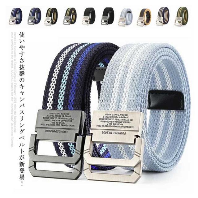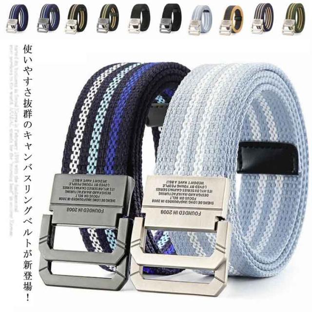 送料無料 キャンバス ベルト メンズ レディース リング ベルト 合金 ダブルリング カジュアル 男女兼用 ナイロンベルト プラスチックバックル