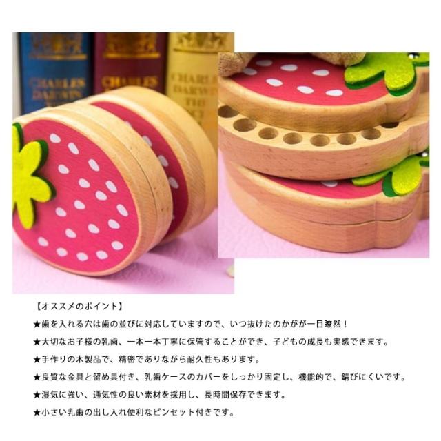 乳歯入れケース 乳歯ケース 木製 イチゴ形状 乳歯ケース 赤ちゃん 髪の毛 名入れ ケース 子供 歯 収納ボックス 歯ケース プレゼント ギフト 男の子 女の子 英語表示シール