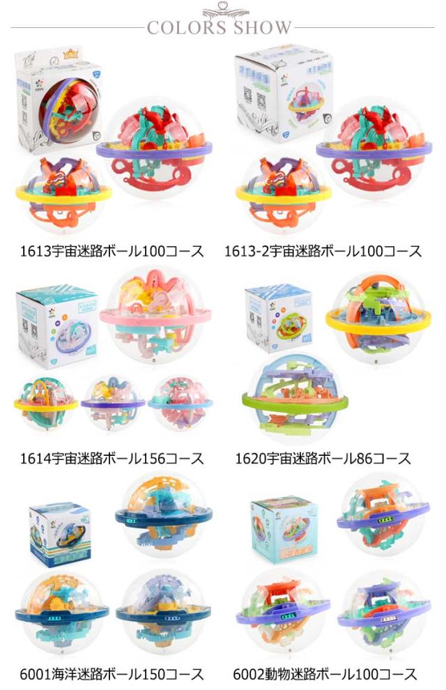 | 色 | 1613宇宙迷路ボール100コース 1613-2宇宙迷路ボール100コース 1614宇宙迷路ボール156コース 1620宇宙迷路ボール86コース 6001海洋迷路ボール150コース 6002動物迷路ボール100コース |