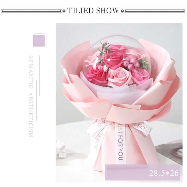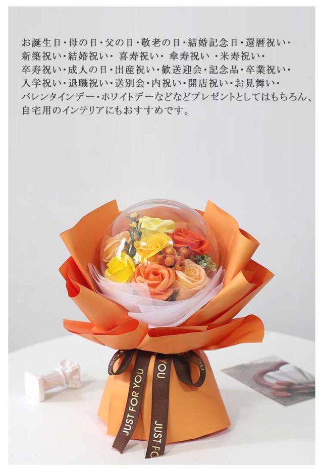 | 可愛いアクリルバルーン入りローズブーケ。 透明なバルーンケースは、穴があり、ほんのりソープの香りが楽しむことができるながら、ほこりや汚れからお花を守ってくれます。 生花と違い花粉もないので花粉アレルギーの人へのプレゼントや病院へお見舞いの品としても安心して贈ることができます。 クリアカバー付きで、ずっとキレイに飾ることができ、いつまでも鮮やかな色彩が楽しめます。 水やり・お手入れ不要なので忙しい中、手を煩わせることなく、届いてすぐ飾れる、枯れないお花、見ているだけで心が和みます。 お誕生日・母の日・父の日・敬老の日・結婚記念日・還暦祝い・新築祝い・結婚祝い・ 喜寿祝い・ 傘寿祝い ・米寿祝い・ 卒寿祝い・成人の日・出産祝い・歓送迎会・記念品・卒業祝い・入学祝い・退職祝い・送別会・内祝い・開店祝い・お見舞い・バレンタインデー・ホワイトデーなどなどプレゼントとしてはもちろん、自宅用のインテリアにもおすすめです。 透明窓付きの専用手提げ袋が付属ですぐにお渡しできます。 | |