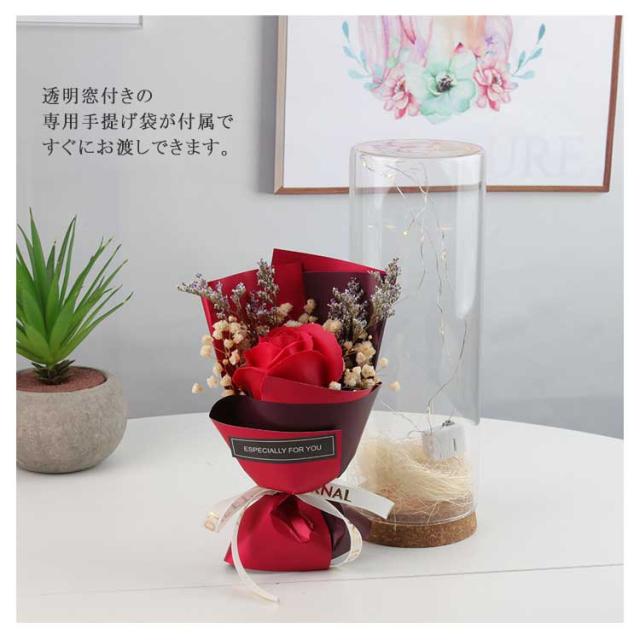 フラワーソープ ソープフラワー 結婚祝い バルーンシャボン 花束 防塵 ガラスボトルフラワー ブーケ ソープフラワー 光る シャボンフラワー 父の日 石けんフラワー LED 誕生日 造花 乾燥花 母の日 女性 退職祝い 高級感