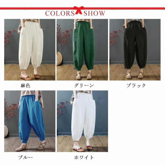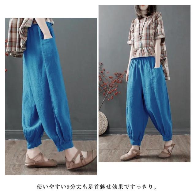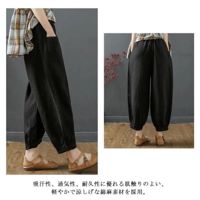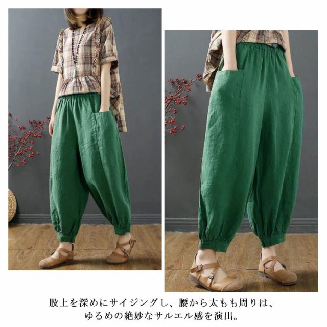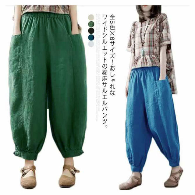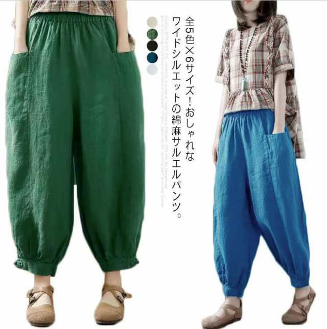 全5色×6サイズ!綿麻 パンツ サルエルパンツ レディース サルエル パンツ アラジンパンツ ワイドパンツ リネンパンツ バルーンパンツ カジュアル ウエストゴム 春 夏 秋 ボトムス 大きいサイズ ナチュラル 無地 薄手 送料無料