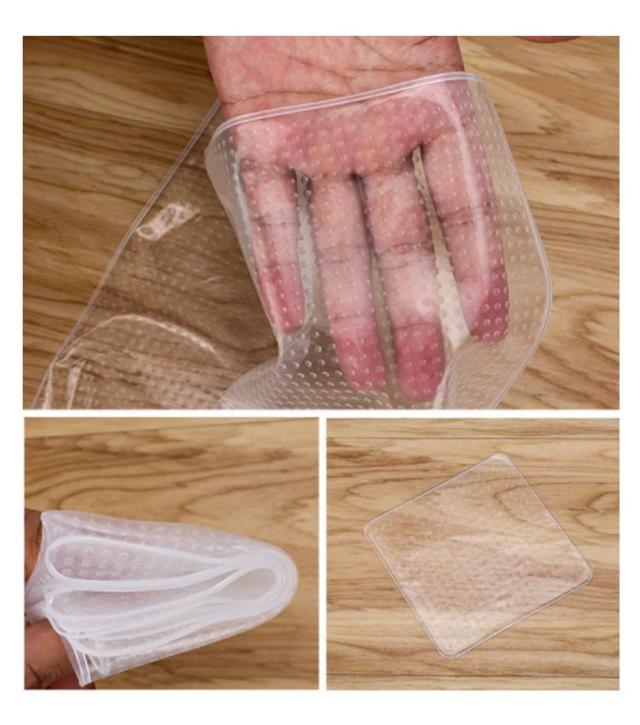 | 電子レンジ・冷蔵庫OK 繰り返し使えるエコアイテム伸びてくっつくシリコンラップ 液体もこぼれにくしい! 鍋敷きやコースター代わりに 滑り止めとして カップの密封に 固いフタを開けるのに便利 | |