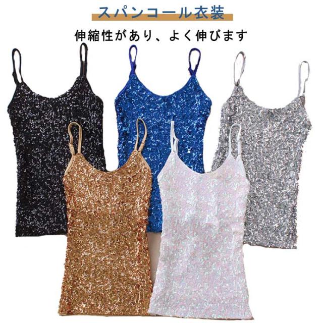 スパンコール キャミソール Vネック スパンコール衣装 衣装 トップス ダンス衣装 スパンコール衣装 インナー 仮装 余興 コスチューム ステージ衣装 レディース びっしりタイプ トップス きらきら コスプレ コスチューム