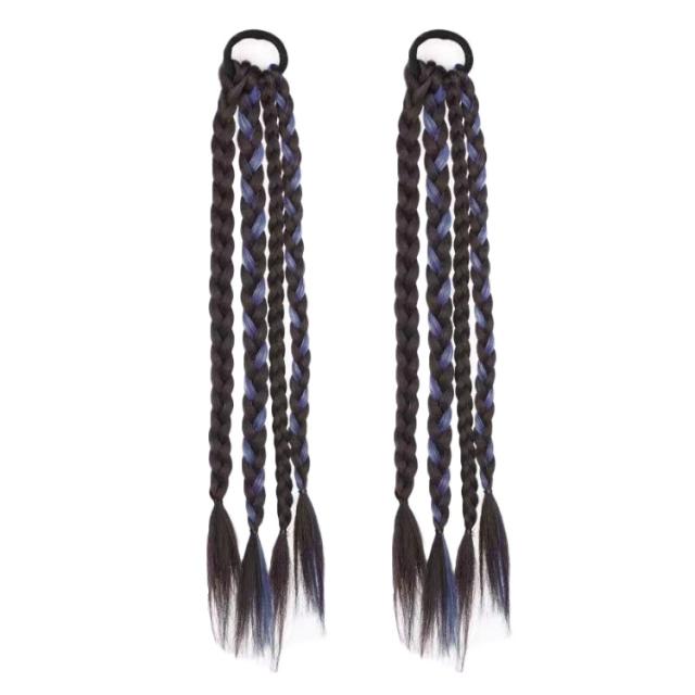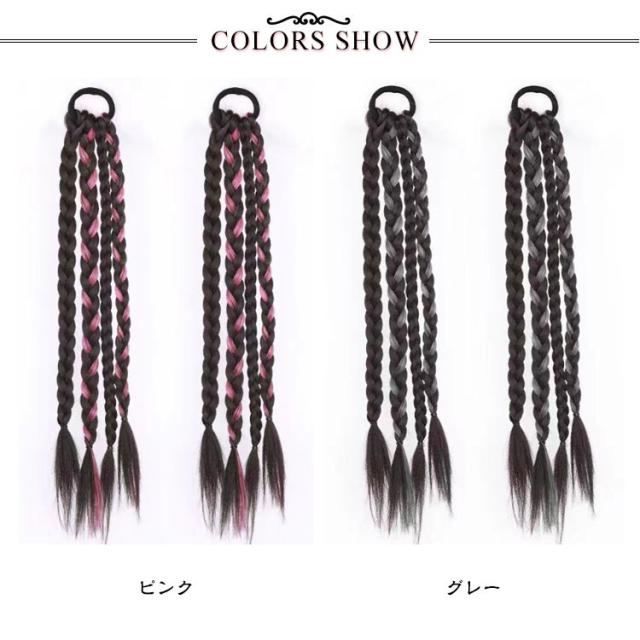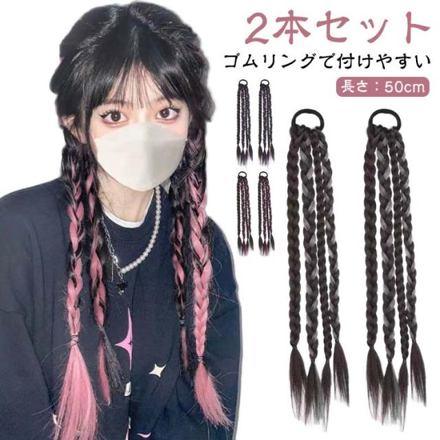 簡単 ウィッグ エクステンション 女の子 ポニーテール 2本セット 三つ編みエクステ エクステ ダンス 三つ編み つけ毛 ヒップホップ 編み込み おしゃれ キッズ 大人 コスプレ 便利 ゴムタイプ ヘアアレンジ アレンジ イベント 毛束 ブラック ブラウン 派手