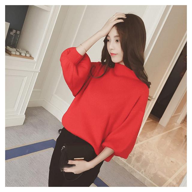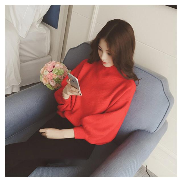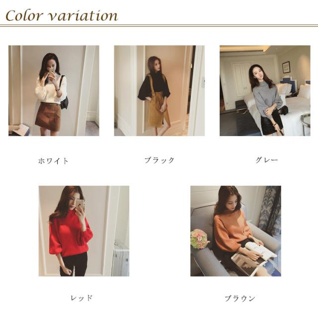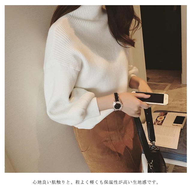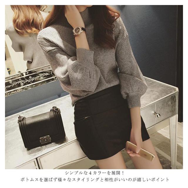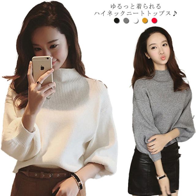 ニットセーター レディース リブニット トップス 長袖 ハイネック ハーフネック ドロップショルダー バルーンスリーブ 送料無料 防寒 暖かい 無地 ゆったり フェミニン おしゃれ かわいい 大きいサイズ 秋冬