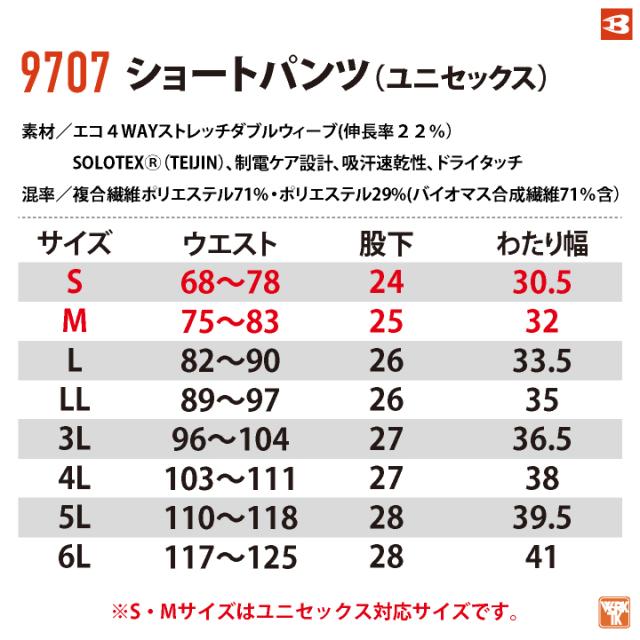 BURTLE 9707 ショートカーゴパンツ 夏場のワークシーンにふさわしい軽い着用感 点接触でベタつかず涼しく快適 SDGs対応 JIS T8118規格適合 帯電防止 ストレッチ 吸汗速乾