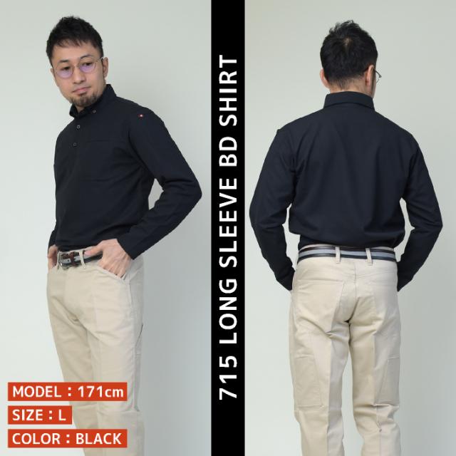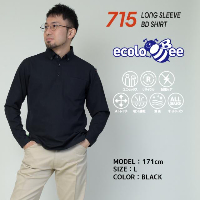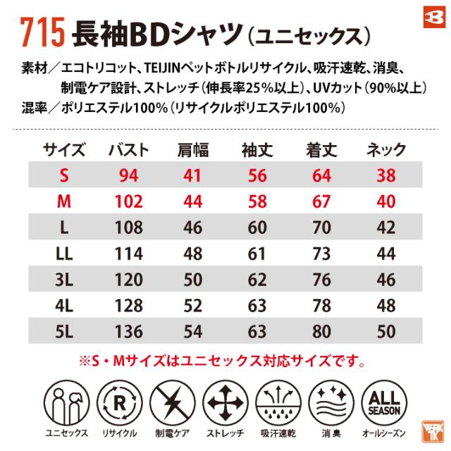 BURTLE 715 バートル 長袖BDシャツ 衿元のボタンダウンがフォーマルなムードを演出 500mlペットボトル約8本使用した、日本製エコ素材 SDGs対応 帯電防止 ストレッチ 吸汗速乾 消臭