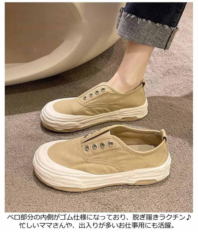 スニーカー レディース ラウンドトゥ スリッポン 柔軟性 フラットシューズ 楽ちん キャンバスシューズ ローカット 紐なし おしゃれ 滑り止め 送料無料 シンプル カジュアルシューズ キャンバススニーカー 通勤 通学 仕事 きれいめ アウトレット