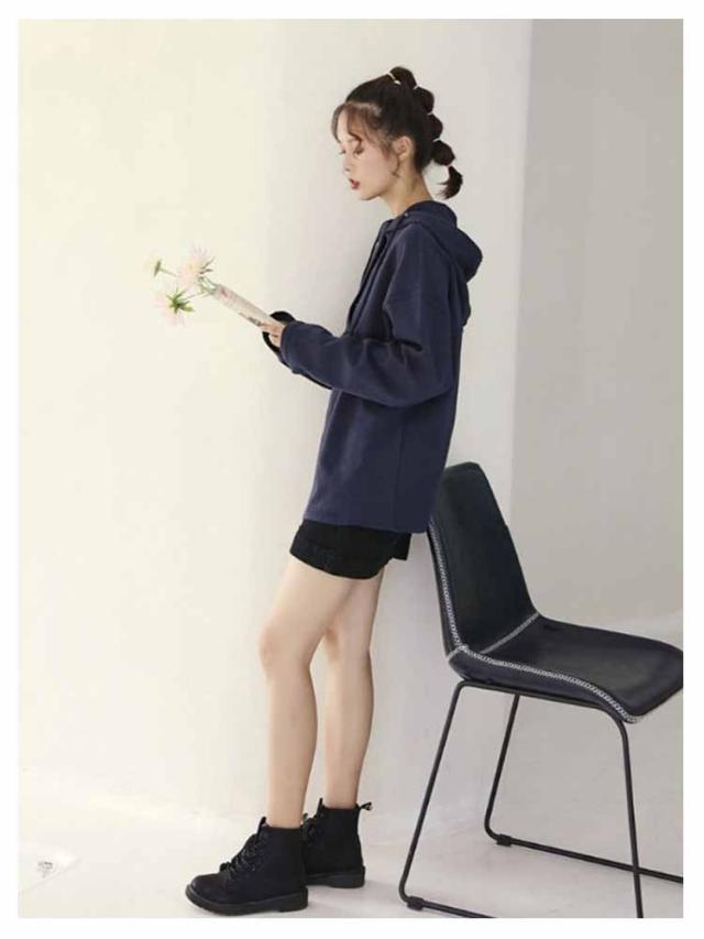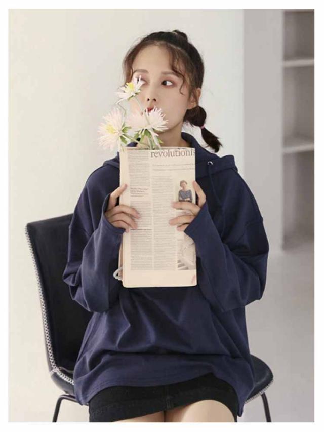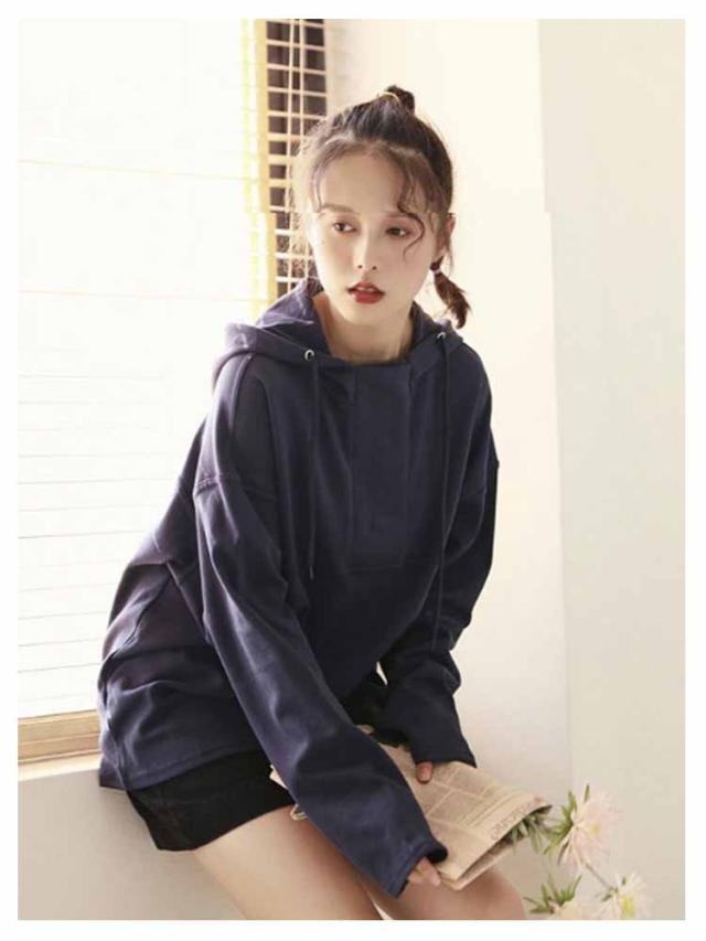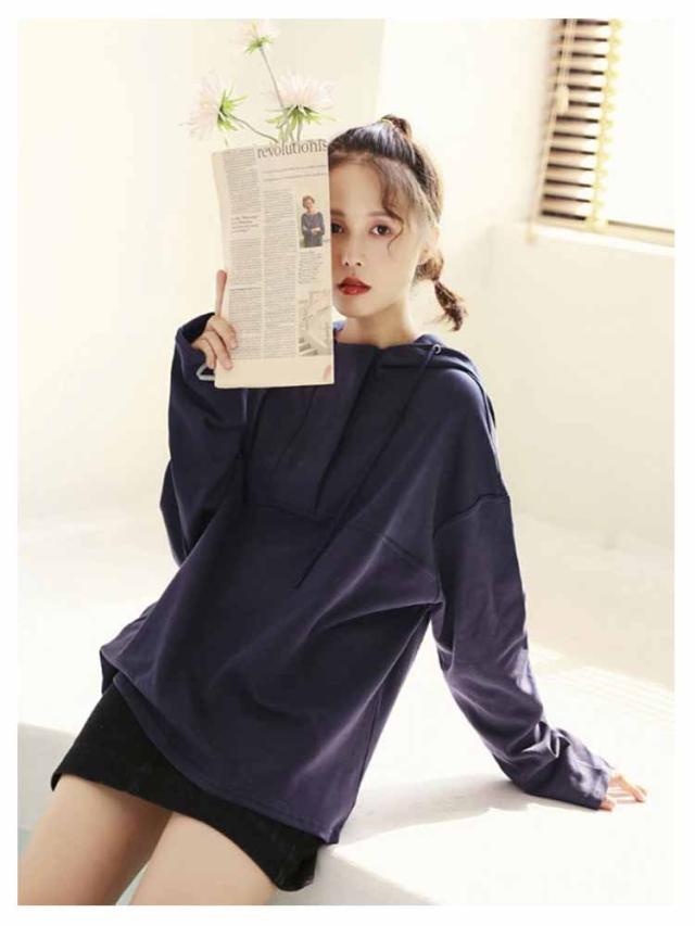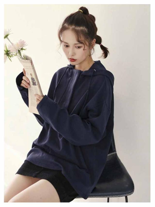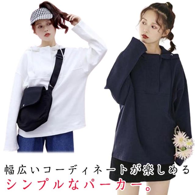 春秋 レディース 大人可愛い パーカー 無地 フード付き 長袖 プルオーバー 薄手 スポーツウェア おしゃれ カジュアル 長袖パーカー コットン 紐付き シンプル 着痩せ 運動 パーカー 春服 秋服 無地パーカー 体型カバー ホワイト ダークブルー