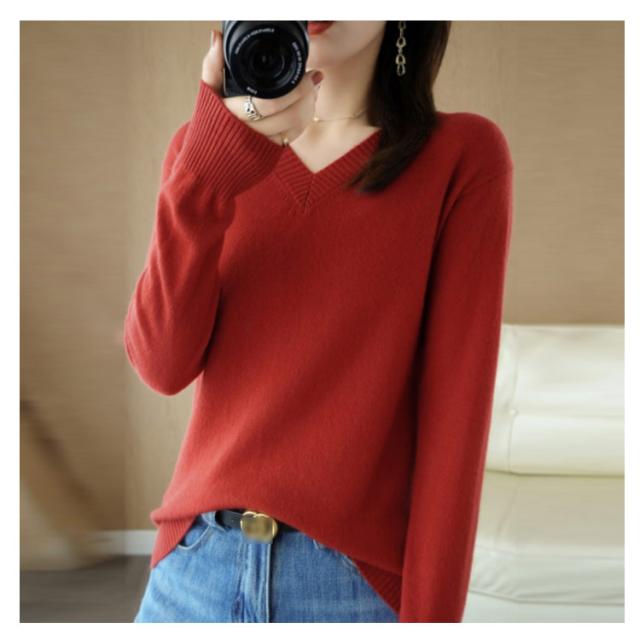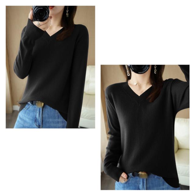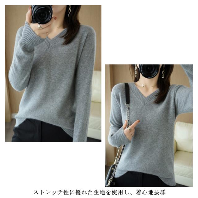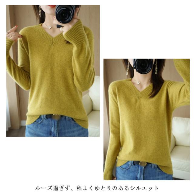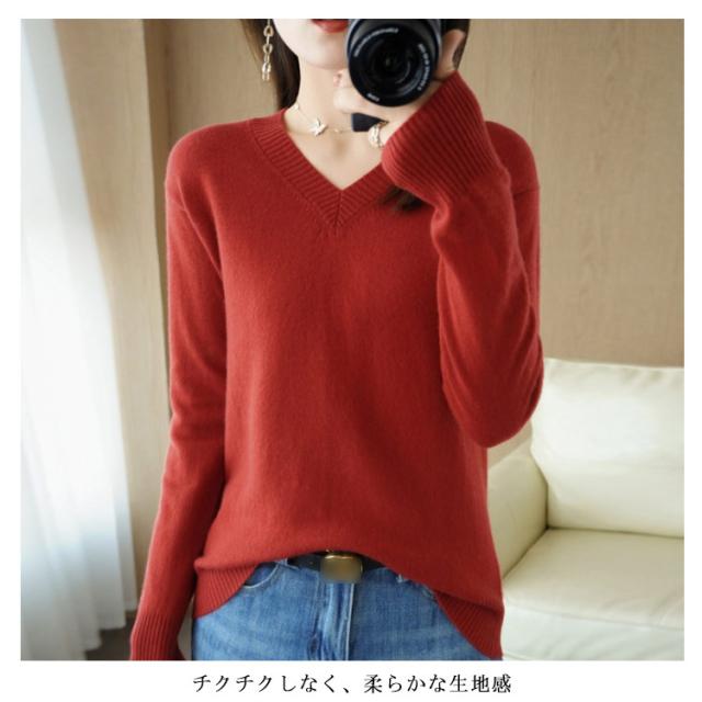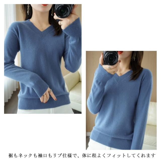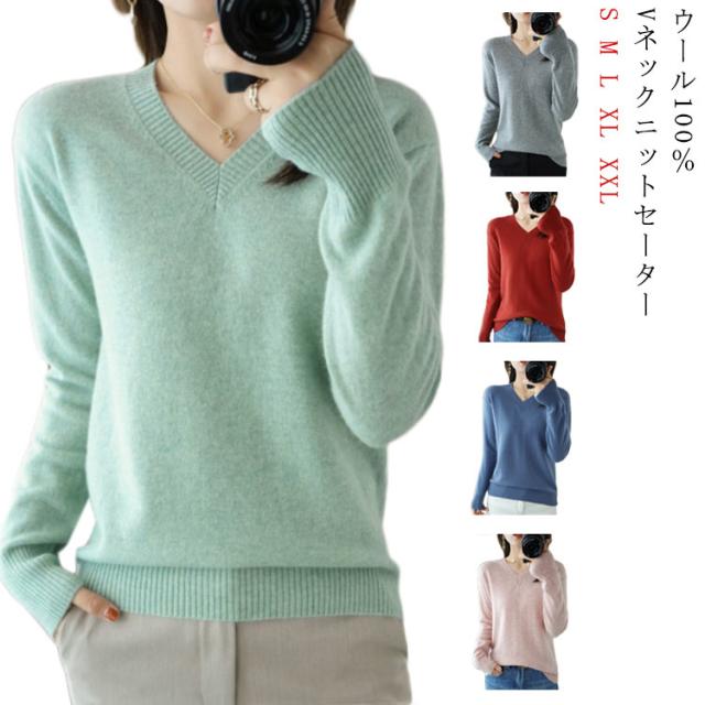 【全10色】ウール100% vネックニット レディース 重ね着 セーター インナーニット 長袖 トップス ニットセーター セーター インナーセーター リブニット リブセーター 薄手 無地 ストレッチ 伸縮性 トップス プルオーバー