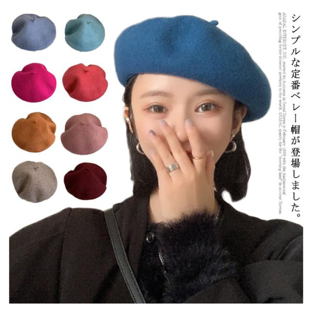 ベレー帽 全20色 レディース 帽子 無地 秋冬 シンプル おしゃれ フェルト レディースファッション 可愛い ピンク 赤 黒 白 ブラック ブルー ワイン あったか 定番 送料無料