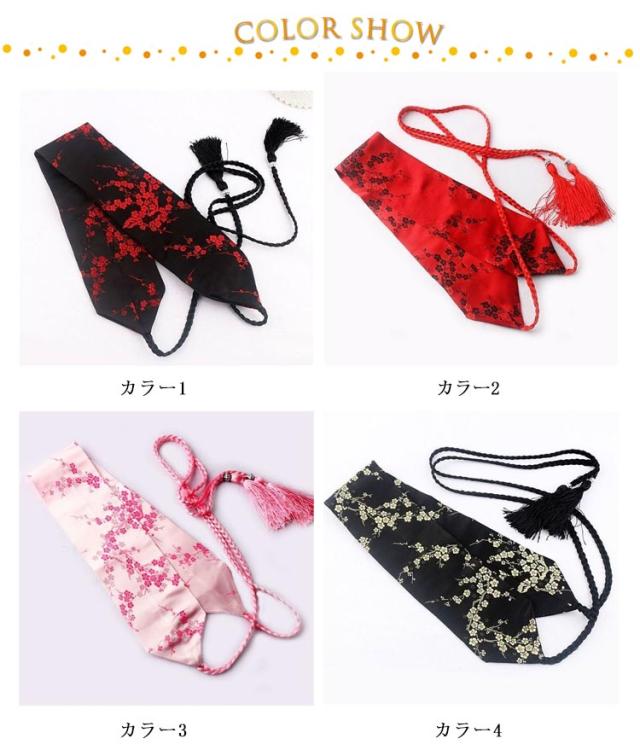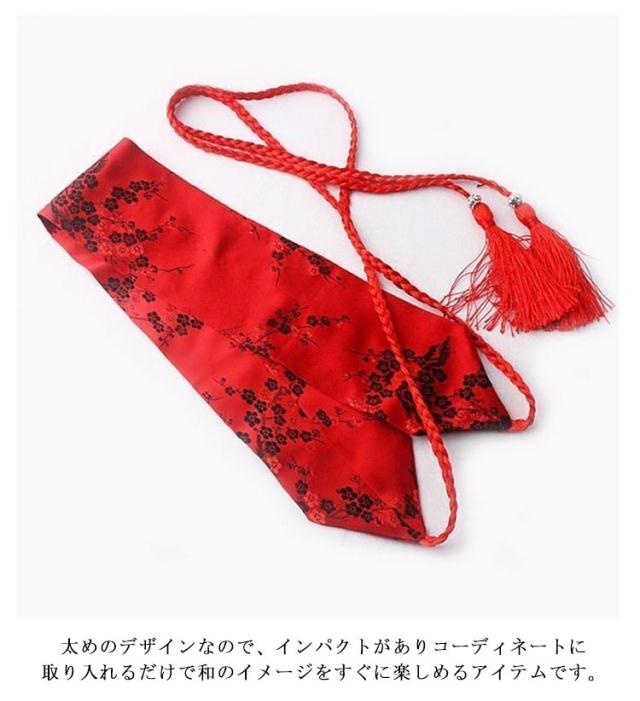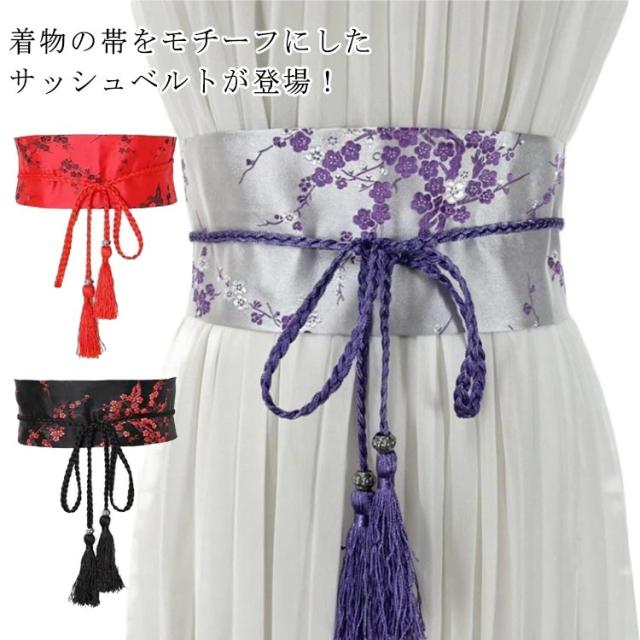 選べる6色 和柄 飾り紐 和柄 花柄 ベルト ハイウエスト 帯締め風 個性的 サッシュベルト 刺繍 サッシュベルト 太ベルト 着物帯 ウエストマーク フリンジタッセル 光沢感 女性用 ウエストベルト 刺繍 カジュアル 大人 和風