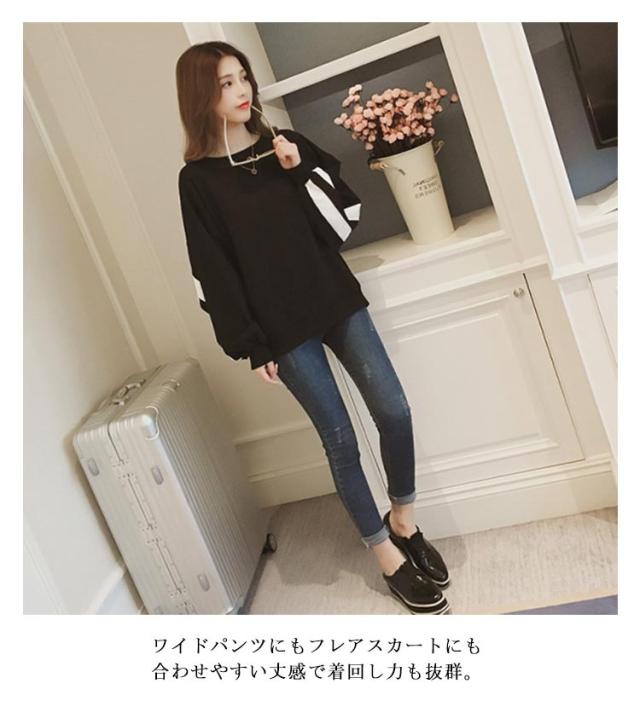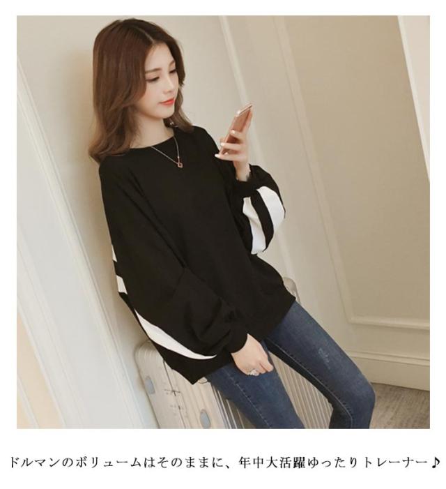 スウェット ライン ロング プルオーバー ゆったり カットソー トレーナー tシャツ ライン入り スウェット ライン入り ラグラン 大きいサイズ ドルマンスリーブ 30代 おしゃれ 体型カバー 大きめ マタニティ 長袖 40代 50代 60代 カジュアル