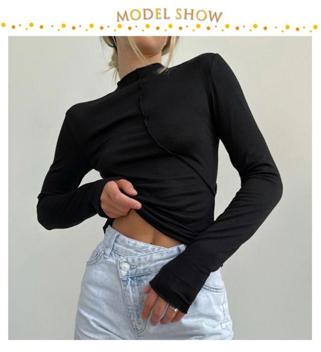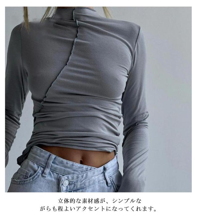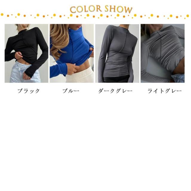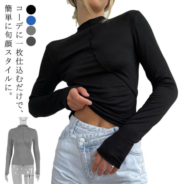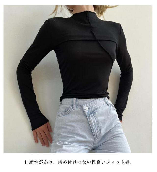 長袖 ハイネック ハイネックトップス インナー カットソー レディース ハイネックトップス レイヤードトップス ブラウス レイヤード tシャツ ライン 薄手 インナー 露出度調整 重ね着 きれいめ 大人可愛い モード ブラック ブルー