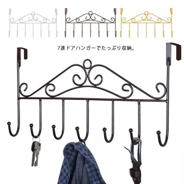 7連 ドアフックハンガー ドアフック 4色 ドアハンガー コートハンガー ドア フックハンガー ハンガー フック ハンガーラック フックハンガー コートかけ 帽子 バッグ かばん ショルダーバッグ スカーフ マフラー ストール コート